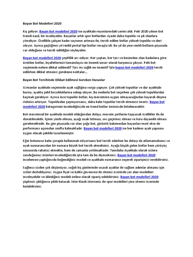 Bizde bot satın almadan sizlere 2020 2021 bayan bot modelleri nasıl bunlar hakkında detaylı bilgiler vermek istedik. 2020 bayan bot modelleri sezonu ne zaman açılacak. Bayan bot sezonu bir çok site ve marka bakımından online haline gelmiştir. Kadın bot modelleri arasından seçim yaparken üretim kalitesi ile ön plana çıkan tamdabu ayakkabıyı tercih etmeniz doğru bir seçim olacaktır.